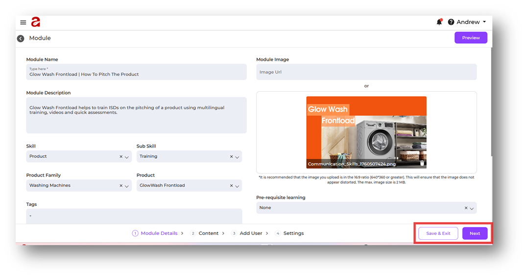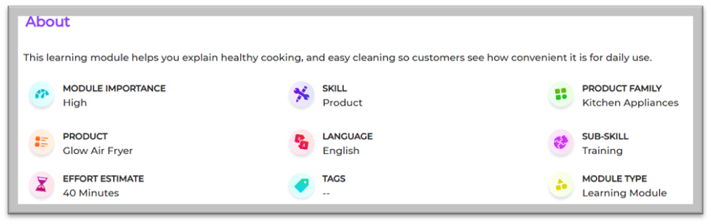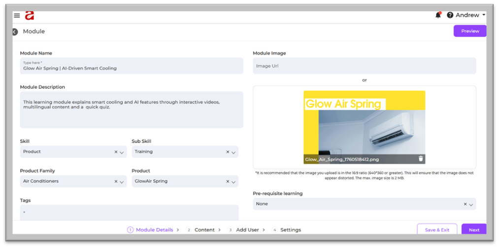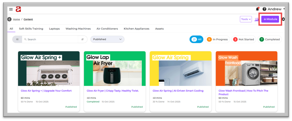 The Set Basic Details section is the first step in creating a new content module. Here, you add the main information that describes the module. These details help learners understand what the module is about and make it easy to search, filter, and access the training.
