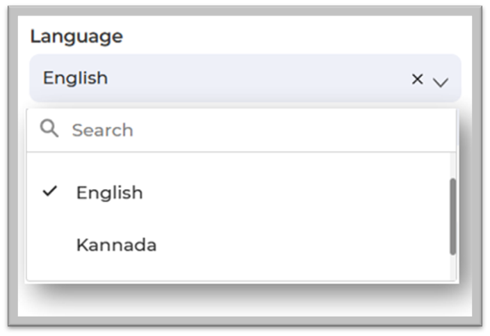 Examples: English, Hindi, Kannada, Tamil, Telugu