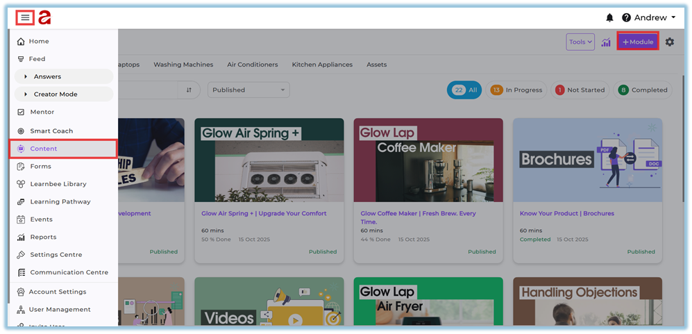 Bsharp Converse Content is a smart tool that lets you quickly create structured training modules from documents, images, videos, and quizzes. With its AI tool, Learnbee, you can instantly convert PDFs into interactive content and publish them with the right user targeting, rules, and reminders.