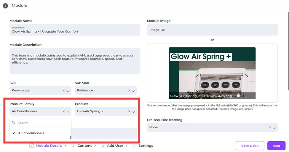 Product Filters help you group training modules based on products. This makes it easy for learners to search, filter, and find the right content.