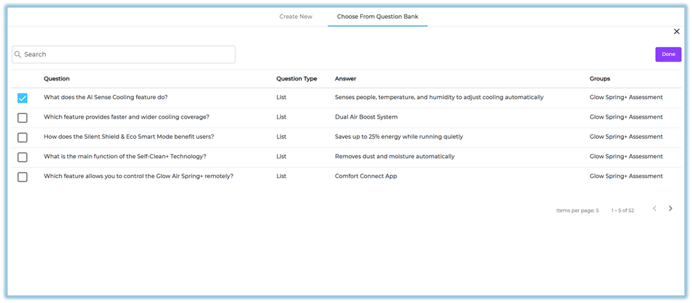 Search and select an existing quiz from the Question Pool.