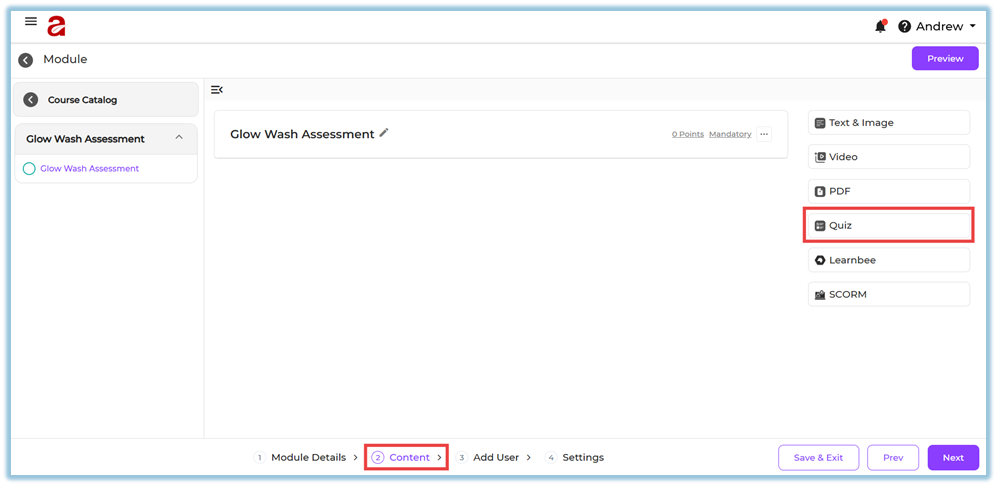 Quiz – An assessment added inside a module page