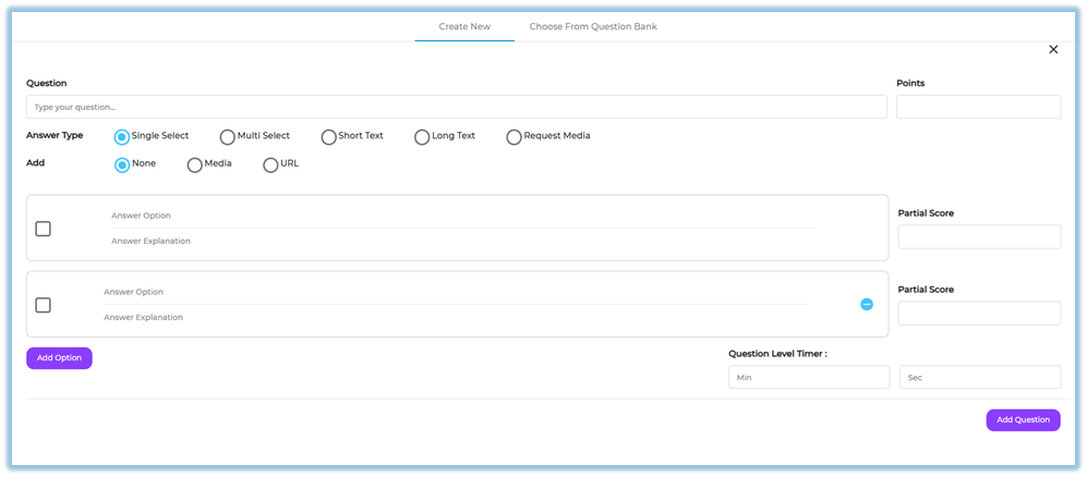 Set the Question-level Timer (seconds or minutes).