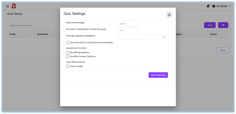 Step 6: Configure Quiz Settings