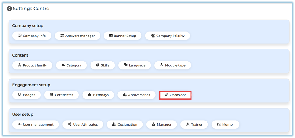 Active / Inactive Status: Occasions can be enabled or disabled as needed.