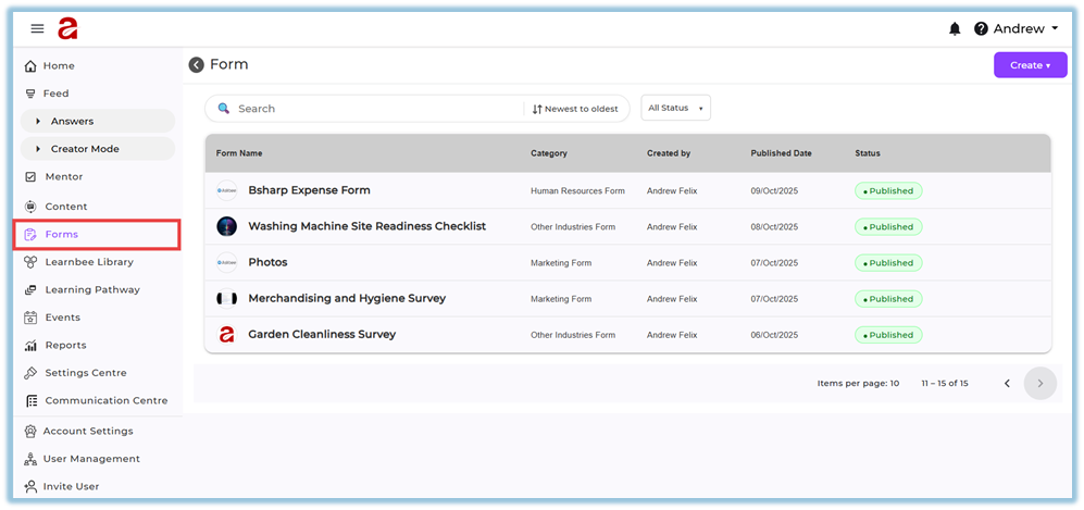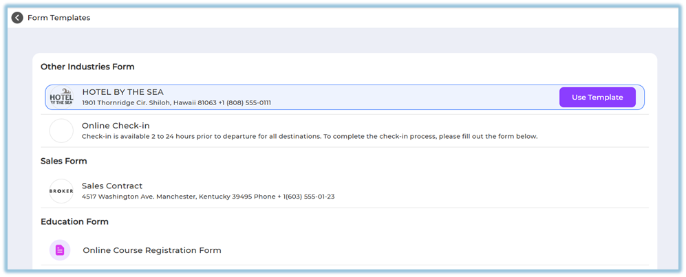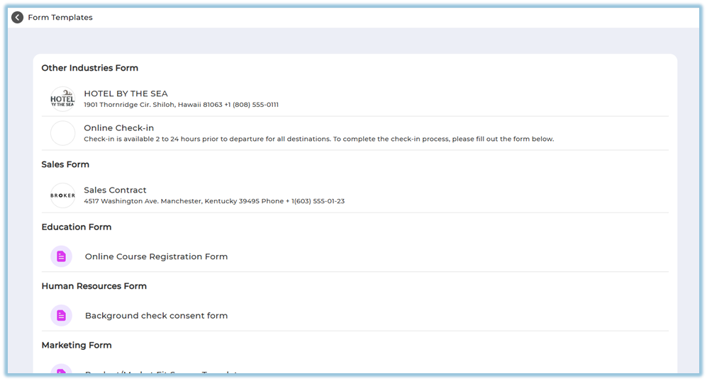 Form Categories – Groupings such as Sales, Education, HR, Marketing