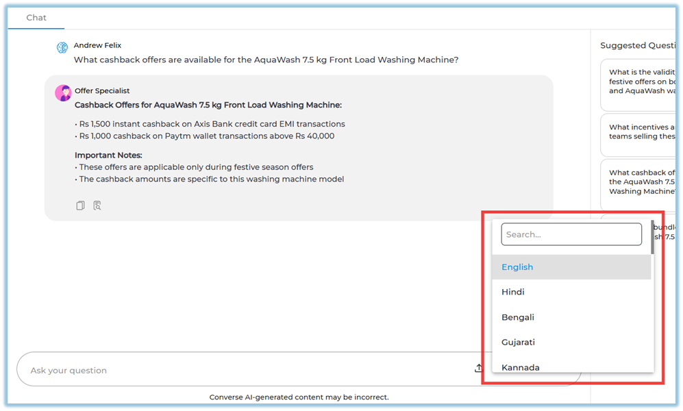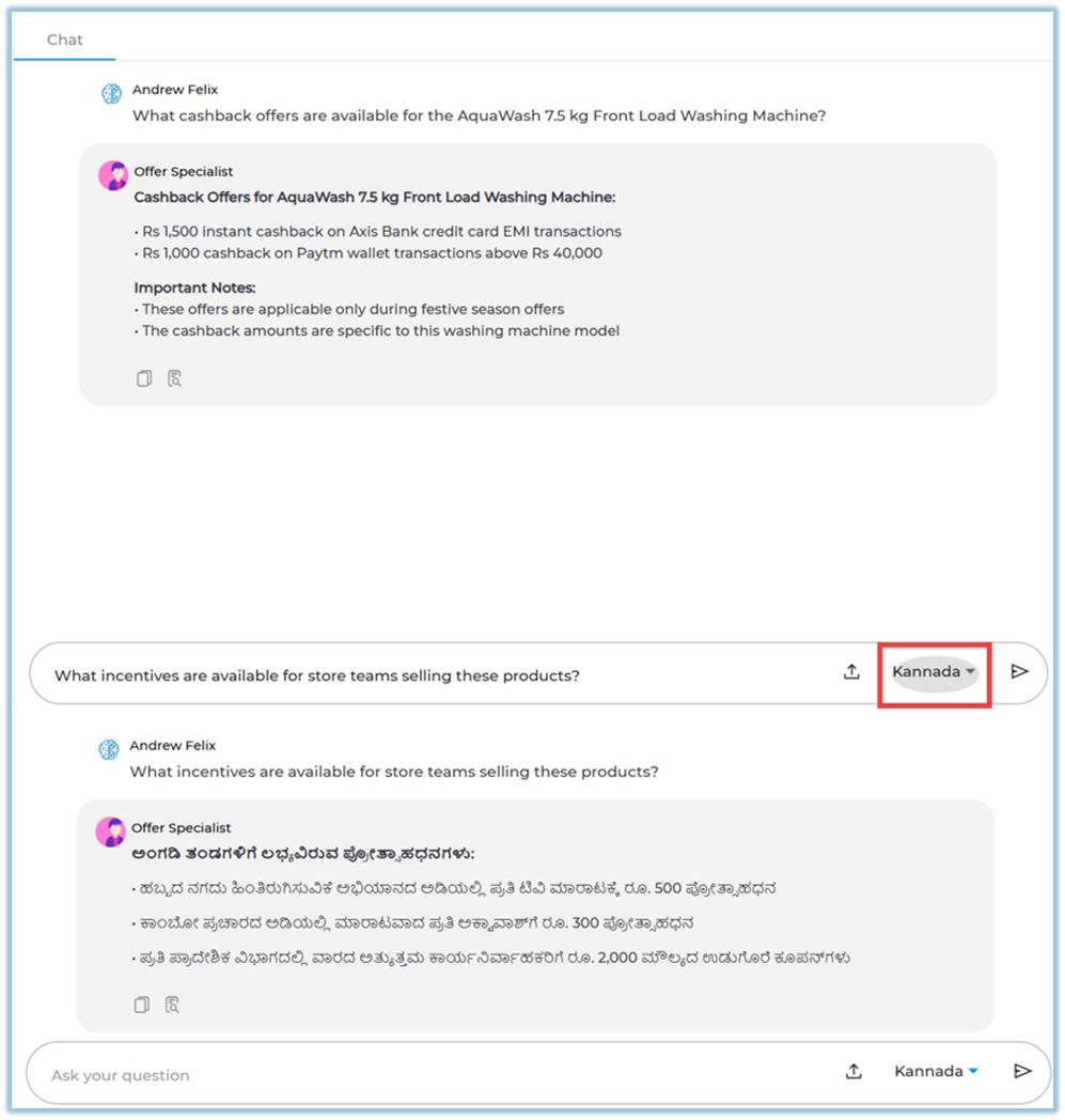 Multilingual Answers – Allows users to receive answers in multiple supported languages.