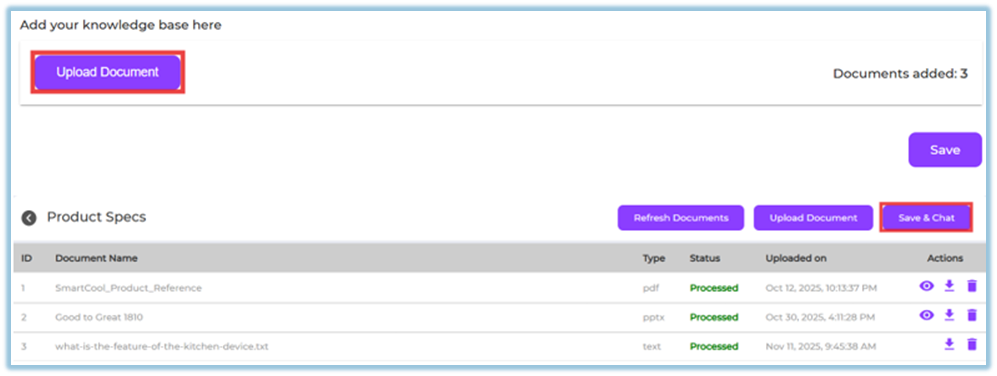 Knowledge Base: Documents uploaded to train the Instant Answers
