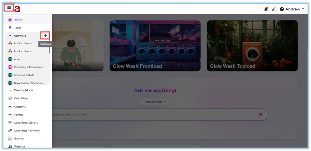 Channel: A category under Answers (e.g., Product Specs, Aura)