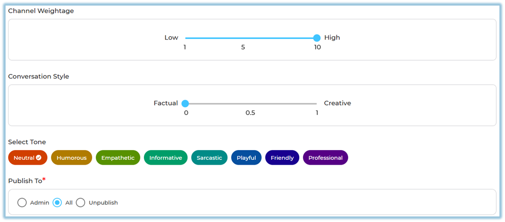 Tone: Style of AI responses (Neutral, Professional, Friendly, etc.)