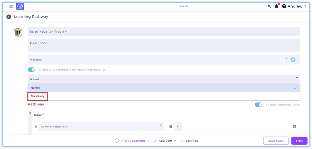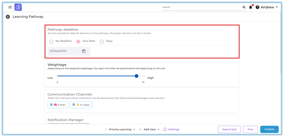 The Mandatory Learning Pathway feature controls user access based on pathway completion. When a pathway is marked as Mandatory and a deadline is configured, users are required to complete it within the given timeline. If not completed, the system restricts access until the pathway is finished.