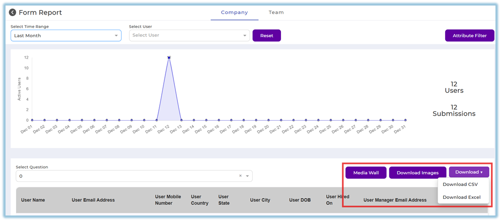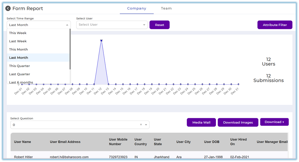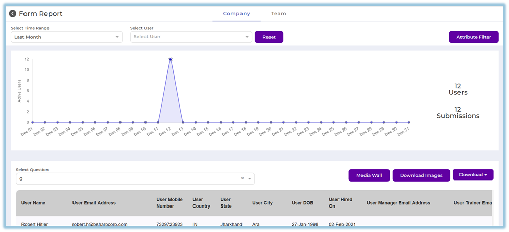 Form Reports in Bsharp Converse allow administrators and authorized users to view, analyze, and download responses submitted for published forms. Reports provide visibility into user participation, submission trends, question-level responses, and media collected through forms.