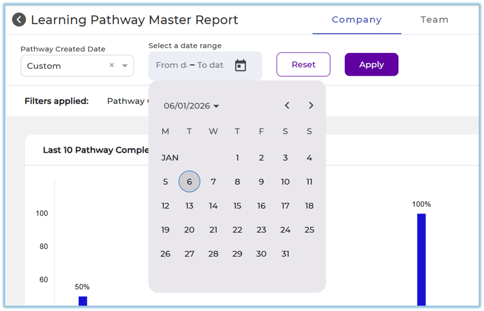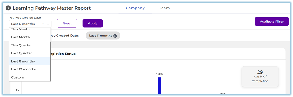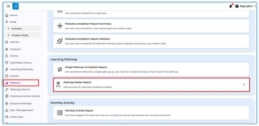 The Learning Pathway Master Report provides a consolidated view of how learning pathways are progressing across the organization. It helps admins and team leads understand completion trends, priority pathway performance, and overall learning progress.