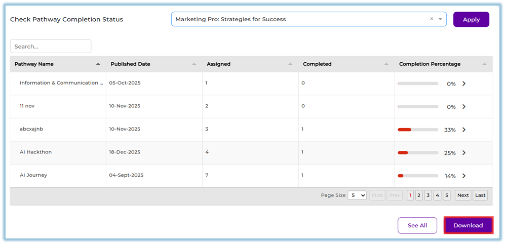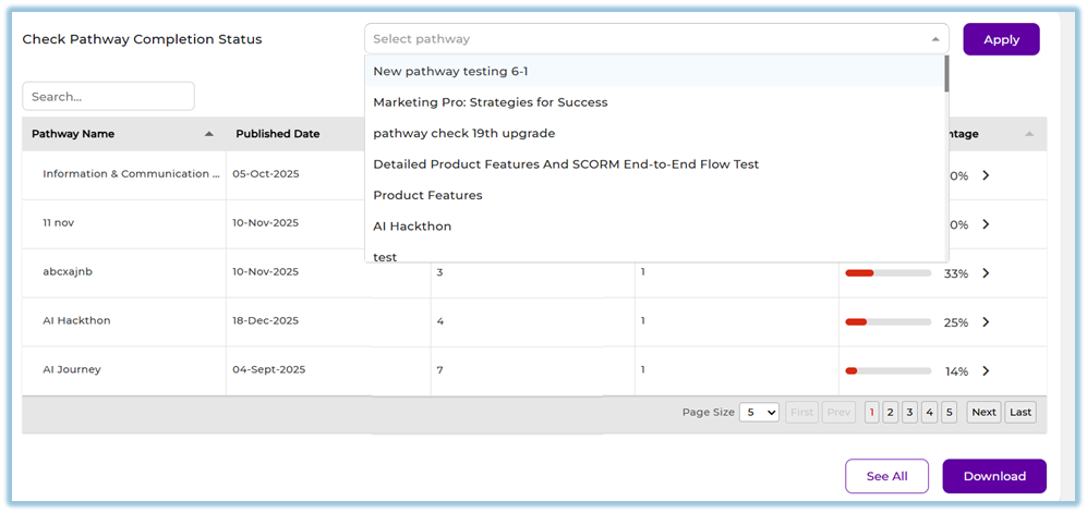 Pathway Completion Status – Shows completion percentage for each pathway.