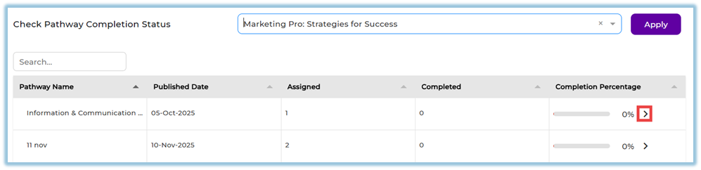 Average Completion % – Indicates the overall average completion percentage across pathways.