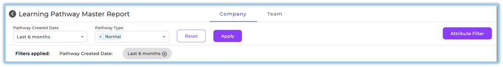 The Learning Pathway Master Report provides a consolidated view of pathway performance across the organization. It helps track completion status, compare pathway types (Normal and Mandatory), and analyze learning progress using filters and summary insights.