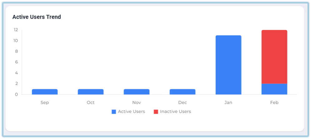 Active Users Trend – Displays monthly comparison of active and inactive users.