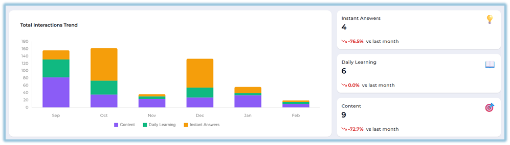 Total Interactions Trend – Displays total completed interactions across features by month.