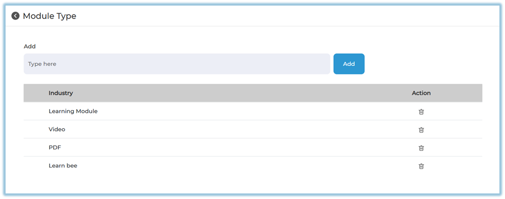 Enter the module type (example: Video, PDF, Learnbee)