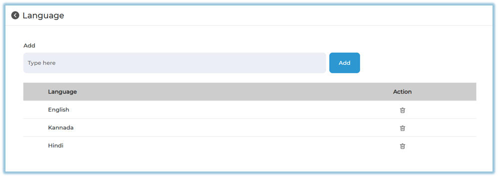 Use the delete icon to remove a language