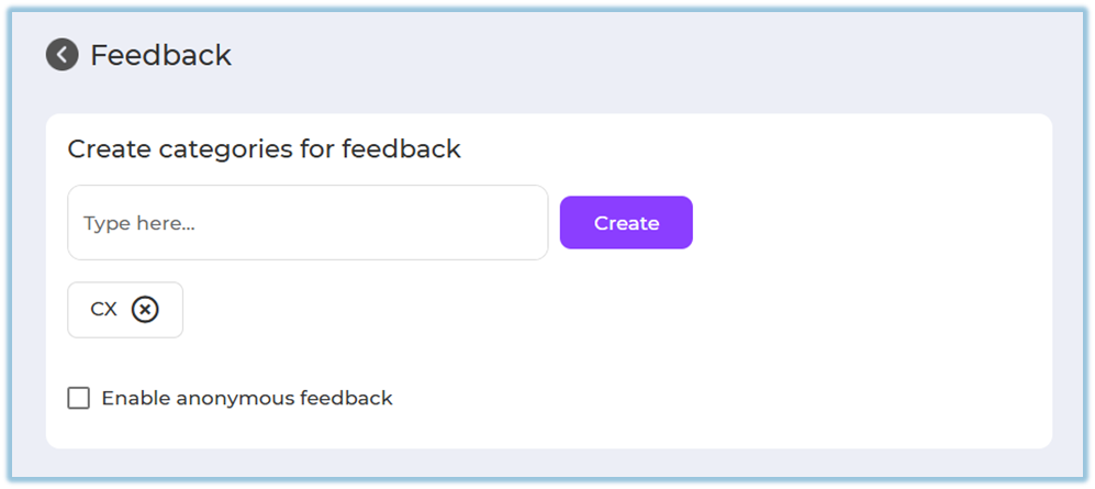 Define categories for feedback and content grouping
